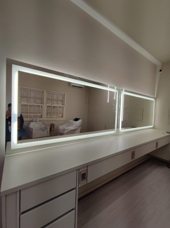Quer valorizar ainda mais o ambiente? Aposte em espelhos de grandes dimensões, feitos sob medida. Eles ampliam a percepção de espaço, aumentam a luminosidade e adicionam sofisticação instantânea.